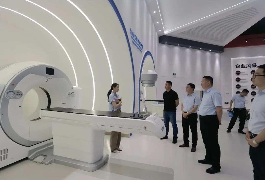 在新华医疗器械股份有限公司,明辉一行重点参观、了解了医学影像虚拟仿真教学实验平台、动态DR、85厘米超大孔径CT、医用电子直线加速器等公司最新产品和创新成果。并与公司相关负责人座谈,了解了公司的主要发展历程,双方围绕智能影像工程专业的人才培养、实验室建设和员工就业等工作进行了深度交流。