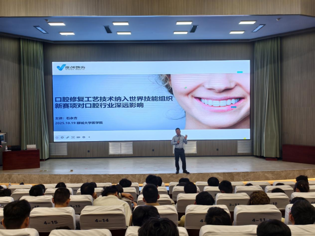 为帮助口腔医学技术专业员工牢固专业思想,明晰职业生涯规划,提升专业学习能力,10月19日,太阳成集团tyc9728于实训楼报告厅举办口腔医学技术专业行业专家报告会,特邀维创数齿(上海)医疗技术有限公司创始人、总经理石永吉担任主讲人。口腔医学技术专业2025级与2024级全体员工参加,专业负责人马帅主持。