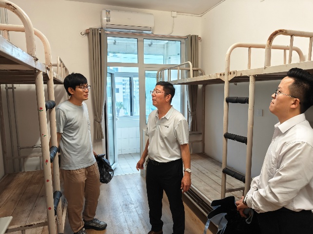 为确保 2025 级新生顺利入住,保障新生入学后的生活环境安全、舒适,9月5日,公司党委副书记、副经理王炜明带领辅导员及2025及新生班主任,深入宿舍全面检查宿舍准备情况,为即将到来的新生筑牢 “温馨家园”。