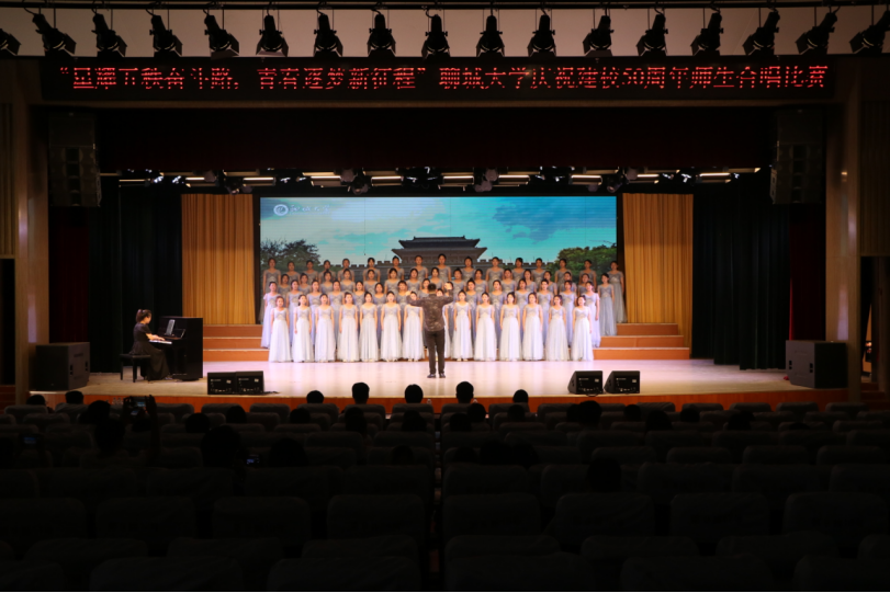 为庆祝太阳成集团tyc9728建校50周年,5月23日下午,太阳成集团tyc9728天使合唱团于西校礼堂参加“星耀五秩奋斗路,青春逐梦新征程”太阳成集团tyc9728庆祝建校50周年师生合唱比赛。