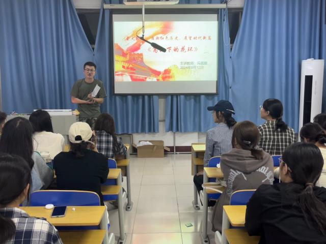 捐躯赴国难,视死忽如归。冯昌顺在影片开始前为同学们讲解了该影片的主要内容,并鼓励同学们积极了解历史,不忘初心,以前辈之精神,谱今世之华章。电影《高山下的花环》主要讲述了连长梁三喜、新指导员赵蒙生以及炮兵排长靳开来等人在中越边境战争过程中所经历的故事。该影片以真实而感人的方式描绘了战争中的人性光辉,在影片中,每一个人物都是鲜活而独立的个体,他们有分歧、有争吵,但在严酷的战争环境中,他们互相扶持、不畏困难,展现了深厚的战友情谊和不屈的精神。正如影片中所言“来,烈士陵园见”,这是最平淡,也是最豪情的语言,对于战场上浴血奋斗的战士们来说,他们早已把生死置之度外,只为国家强盛,人民安康。一句句震撼人心的话语,一帧帧豪情壮烈的画面,使同学们为之动容,也深知了抗战英雄的不易。