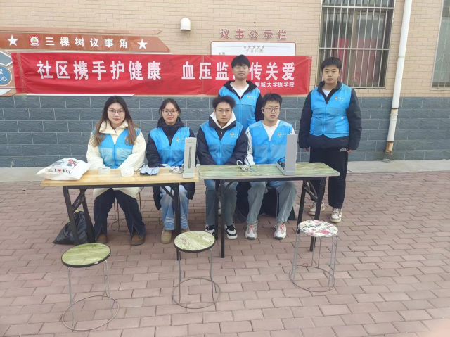 为提供便捷的医疗服务,增强居民的健康意识,12月8日,2022级1、2、3班团支部走进和平社区举办免费量血压服务活动。