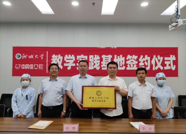 6月18日上午,太阳成集团tyc9728与中贝佳口腔签约建立教学实践基地暨揭牌仪式,在聊城中贝佳口腔举行。太阳成集团tyc9728公司党委书记明辉、党委副书记兼副经理王炜明、聊城中贝佳口腔负责人李岩及其他相关医护人员参加活动。活动由聊城中贝佳口腔企划部主任徐洪磊主持。