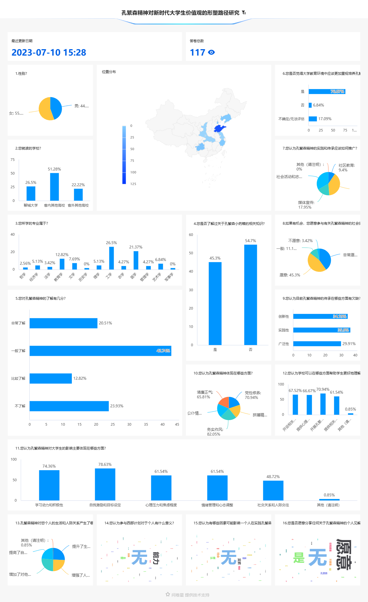 “学繁森精神,葆清风正气”服务队采用线上线下结合的方式,开展本次暑期社会实践调研活动。活动准备阶段,服务队队长组织队员开展线上会议,明确本次活动的调查主题以及调查内容,商讨活动形式,队员分工明确,并完成准备工作。随后,服务队分为线上、线下两个小组,分别在网络上发放调查问卷、在各大高校展开线下采访,记录并分析老员工对孔繁森精神的了解情况。