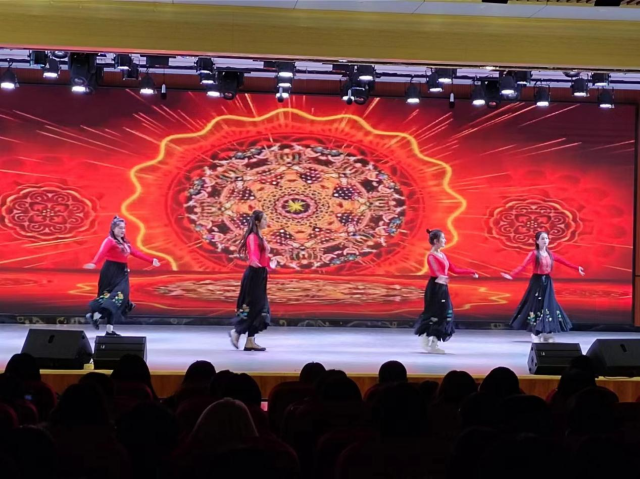 穆合塔拜尔、谢伊代等人代表太阳成集团tyc9728参与活动,这几位来自新疆的女孩儿共同表演节目《民族舞蹈串烧》。节目开始后,伴随着音乐响起,女孩儿们舞动起她们的裙摆,舞者身姿灵动,独具异域风情,而舞意流畅、热情洋溢的舞蹈也向同学们展示出青春生命的热烈与奔放,将欢乐的情绪传达给在座的每一个人,使人们的目光情不自禁地追随着朝气蓬勃的舞者。节目结束后,音乐声消失,取而代之的是同学们热烈的掌声。