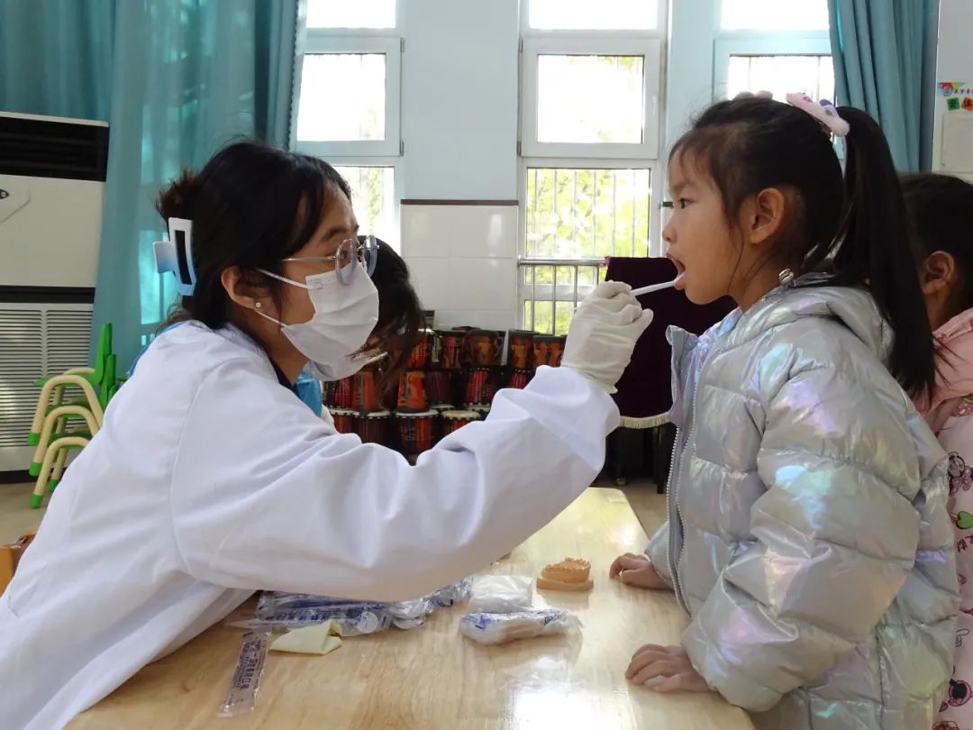 义诊环节,志愿者采用“一查一记”的合作方式,使用简易且科学的医疗工具给现场的小朋友进行口腔医疗诊断,主要从是否存在龋齿、有无乳牙滞留、牙齿异常、口腔软组织异常等方面检查小朋友们的口腔健康状况并做好检查记录,帮助家长有针对性地了解孩子们的口腔问题,寻求专业口腔医生的帮助。“平常要按时刷牙,不要吃太多糖”“不要用手触碰牙齿,要养成勤洗手的习惯”志愿者和蔼可亲的态度,专业科学的知识减轻了小朋友们内心的恐惧,有利于他们更加配合志愿者的检查。小朋友们乖巧懂事,志愿者专业负责,带队老师积极配合,牙齿检查在大家的共同努力下顺利完成。