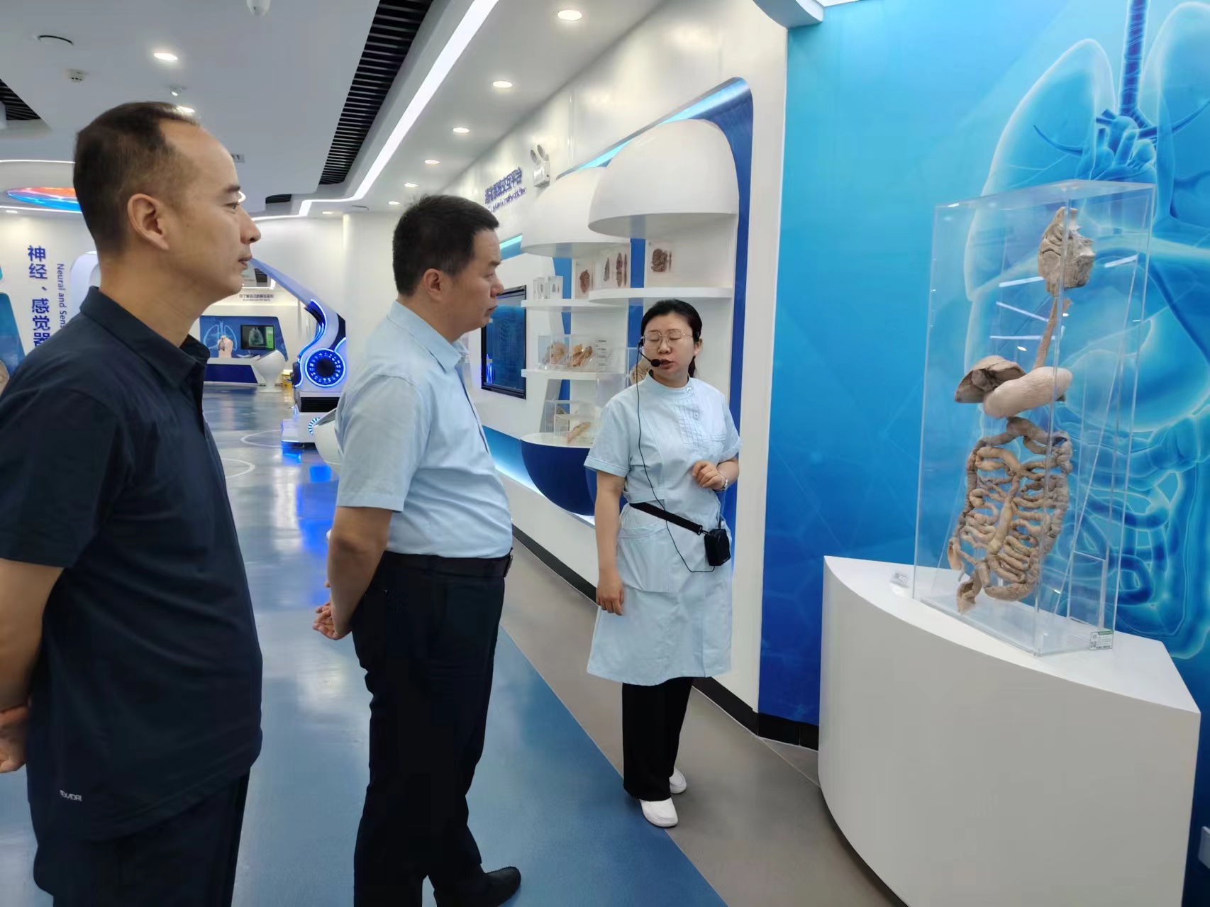 首先在曲江波主任的带领下,明辉书记一行参观了生命与健康科学馆、人体解剖学实验室、口腔数字化实验室、护理技能实训中心,然后前往护理系会议室进行座谈交流。